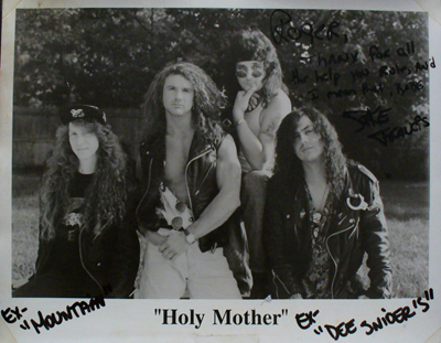 I met Randy in the mid 90’s when I had my shop and was servicing the likes of Zebra, Twisted Sister and many other Long Island favorites. He formed “Holy Mother” which consisted of guitarist Spike Francis, who played with Dee Snider, and Mike Terelli on vocals. Randy came to me with various repairs that needed my expertise. We were also asked to join forces on a project that looked promising at the time. Myself, Randy, Bobby Rondinelli and some other semi-famous music biz pros were set to create a website for online music Q&A’s. The project never took off, and a year or so later I moved out of state and lost touch with the producer. Randy and Spike were friends, and so I got them to sign a rare backyard “early days” promo photo. Has anyone seen Spike? |